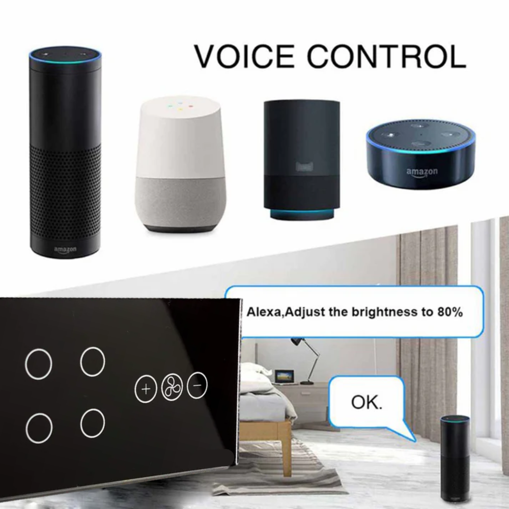 This WiFi-enabled fan dimmer switch not only gives you convenience but also helps optimize electricity usage. The fire-retardant ABS material and tempered glass ensure safety, while the memory function restores your last ON/OFF state after power loss.