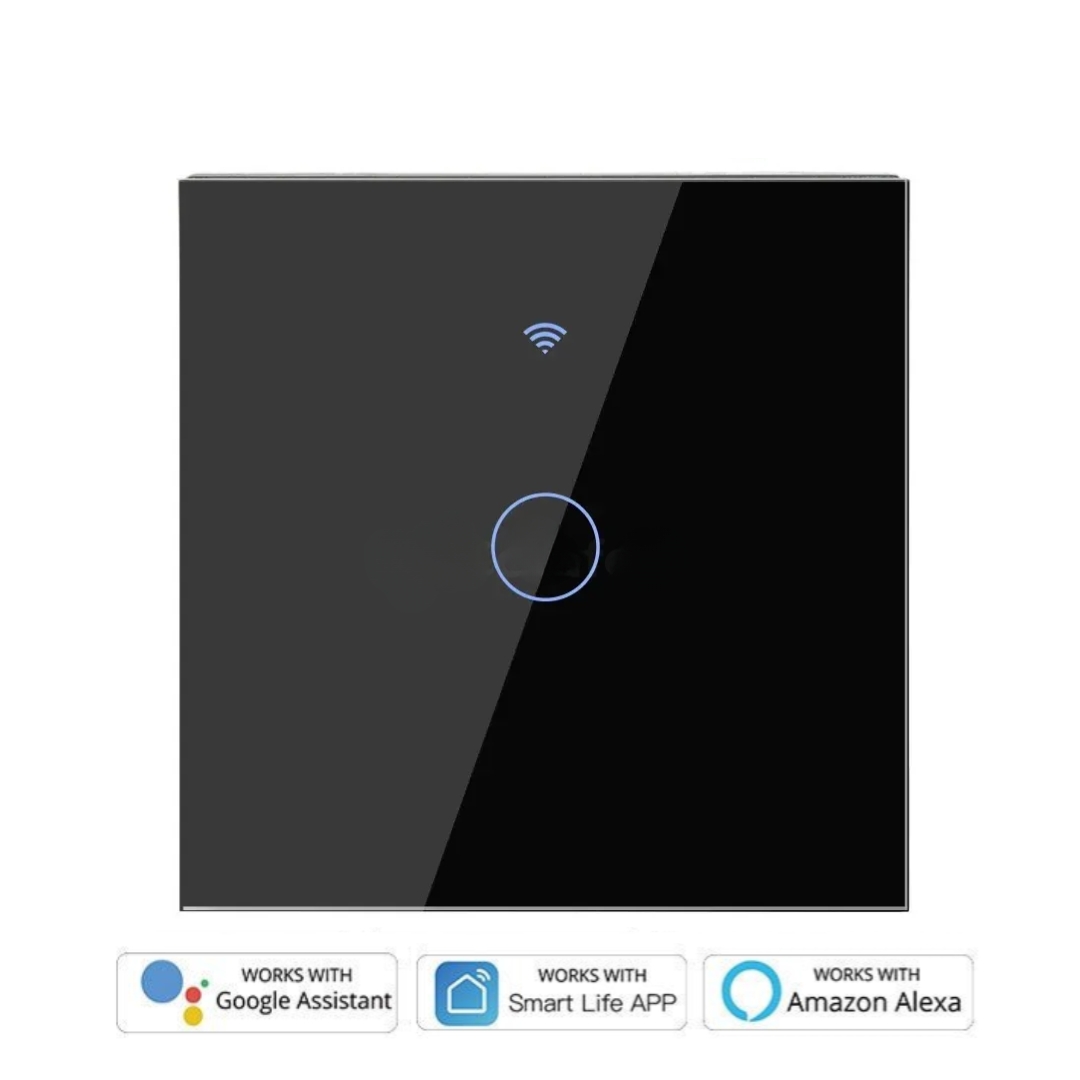 The WiFi Touch Switch Panel 1 Gang is designed to bring elegant and powerful lighting control into your home. This single-gang touch switch installs like a standard wall switch but adds app control, voice commands, scheduling, and a sleek black glass interface. If you’re upgrading your lighting system, this switch provides intelligent automation while keeping installation simple and safe.
